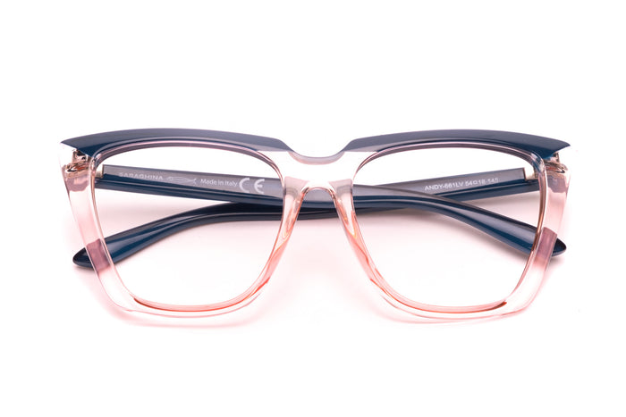 occhiali da vista saraghina modello andy in nylon con frame blu-pink e lenti trasparente