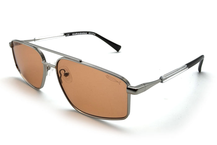 occhiali da sole saraghina modello bart in metallo con frame nikel e lenti orange