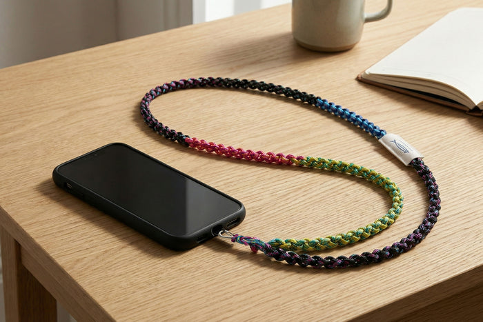 Cordino porta cellulare SARAGHINA con intreccio multicolor resistente e leggero, pensato per tenere lo smartphone sempre a portata di mano con stile. Un accessorio pratico e funzionale, ideale per uso quotidiano, viaggi, eventi e tempo libero.