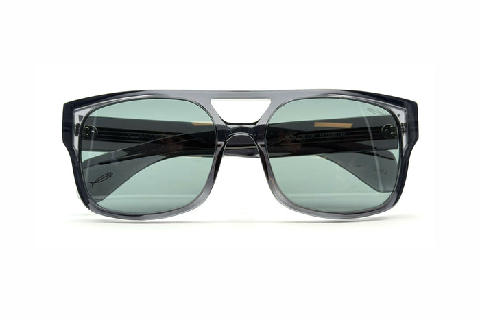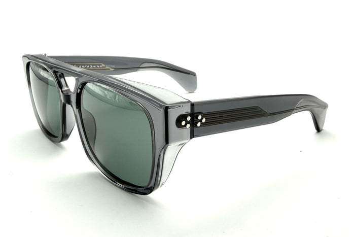 occhiali da sole saraghina modello fabio in acetato con frame gray e lenti green