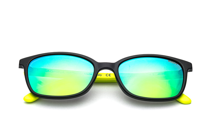 occhiali da sole saraghina modello greg in nylon con frame nera-gialla e lenti grigia
