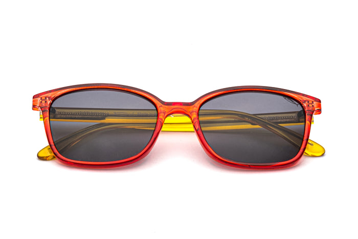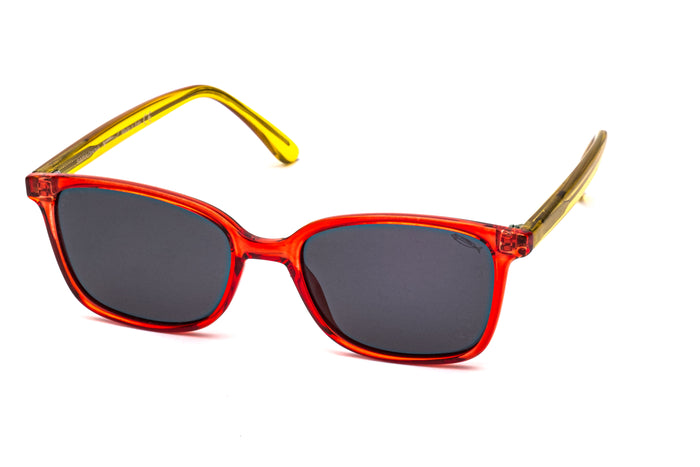 occhiali da sole saraghina modello greg in nylon con frame rossa-gialla e lenti grigia