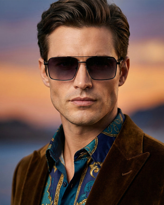 occhiali da sole saraghina modello lapo in metallo con frame black e lenti solid smoke