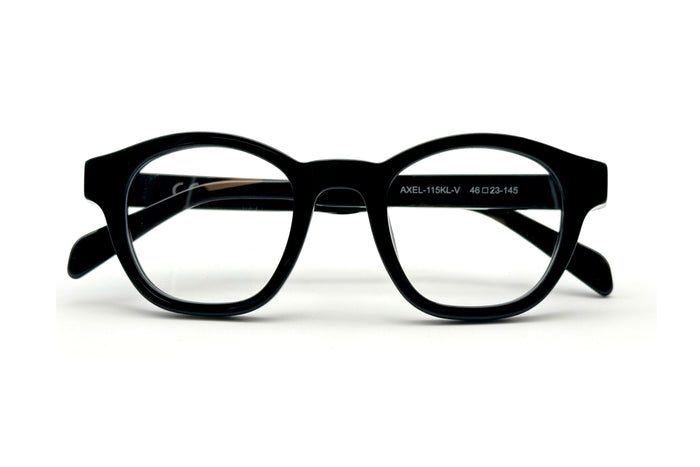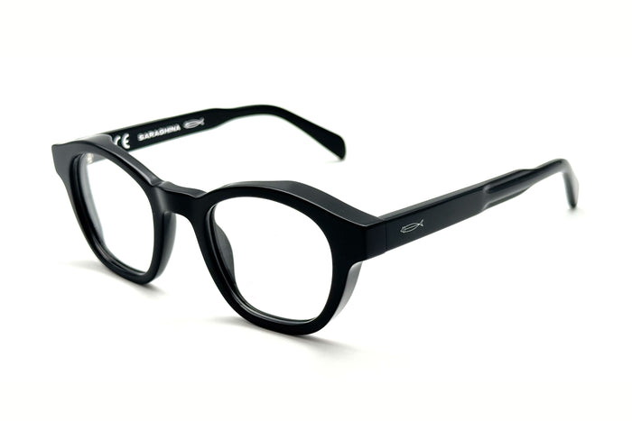 occhiali da vista saraghina modello axel in acetato con frame nero e lenti lente grigia