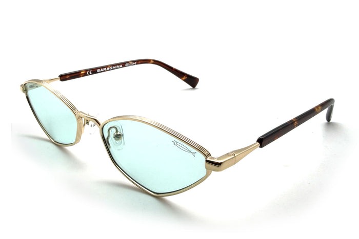 occhiali da sole saraghina modello dafne in metallo con frame gold e lenti green