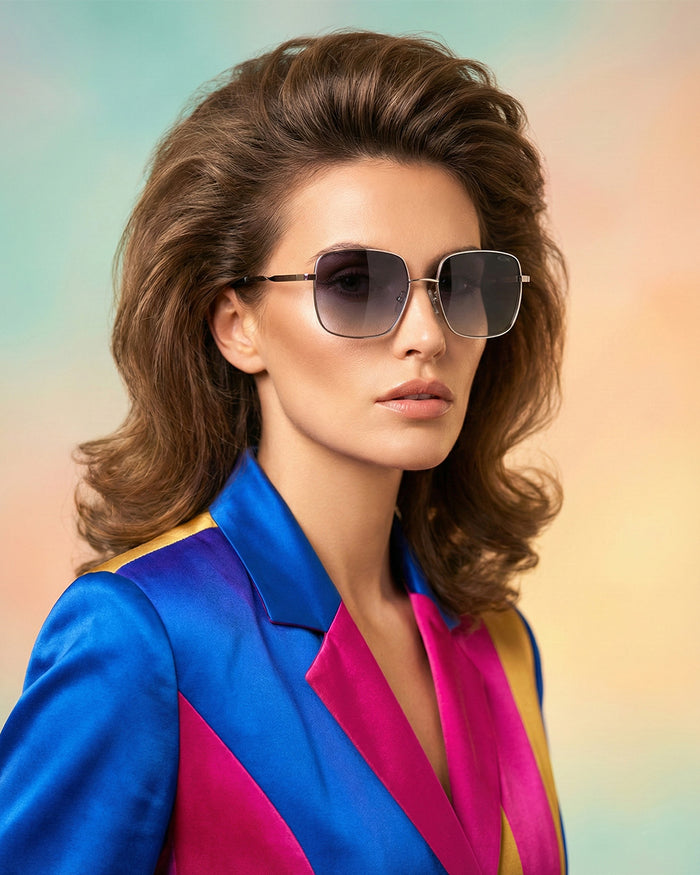 occhiali da sole saraghina modello grace in metallo con frame nikel e lenti flash silver