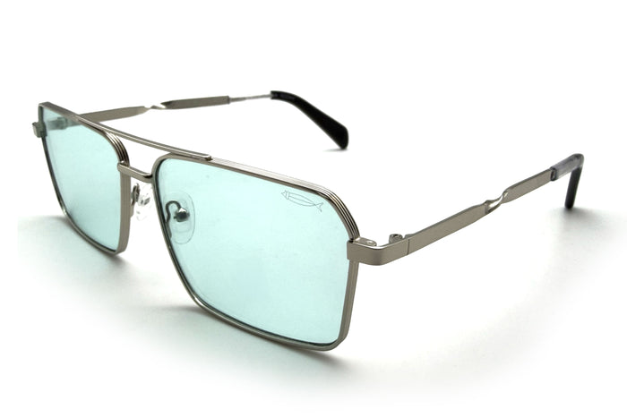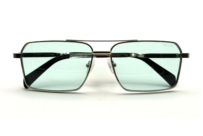 occhiali da sole saraghina modello lapo in metallo con frame nikel e lenti green